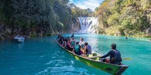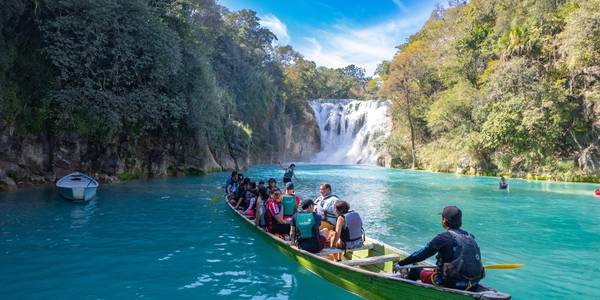 Súbete a una lancha y navega por el río hasta llegar al pie de la cascada 💦