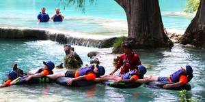 Consiste en flotar río abajo sobre una llanta inflable, disfrutando del agua turquesa y la naturaleza 🌿🛟
