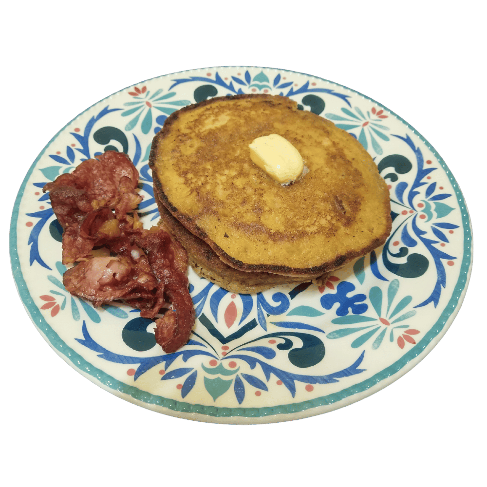 Con tiras de tocino, mantequilla y mermelada de zarzamora